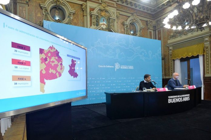 El Jefe de Gabinete, por su parte, presentó la situación del esquema de fases en la provincia: 40 municipios están en fase 2, 58 en fase 3 y 37 en fase 4. Bianco destacó el funcionamiento de este sistema, vigente desde junio de 2020, para el cual se adoptaron y adaptaron las medidas tomadas por el Gobierno nacional: “El sistema de fases ha dado resultados. Hace diez días hicimos modificaciones, en concordancia con el Gobierno nacional, para cuidar la vida de la gente, y esas medidas se traducen en un amesetamiento. Ahora debemos lograr que baje la curva de contagios”.
