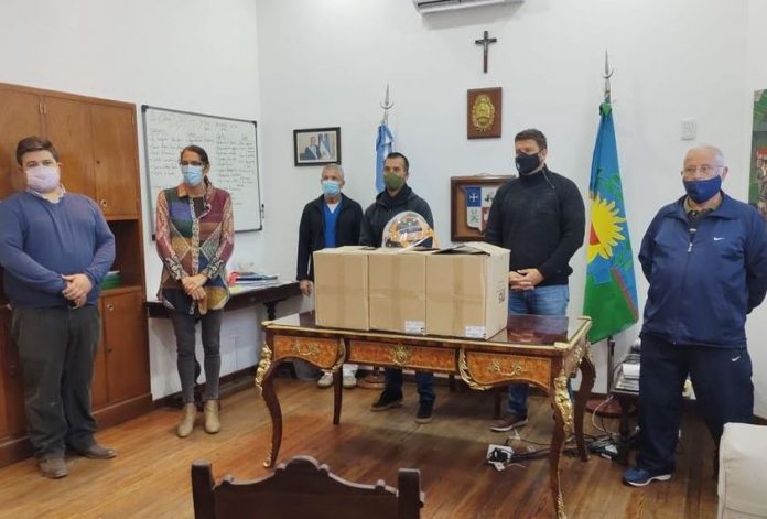 La donación la concretó el presidente rotario Luis Maidana junto a otros integrantes de la entidad. Se reunieron con el intendente Diego Nanni en su despacho; Nanni valoró el gesto del Rotary. Las máscaras ya están en poder del personal de Salud.