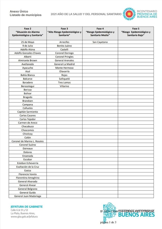 En torno a las restricciones, se aguarda para este sábado la comunicación oficial del gobernador Axel Kicillof, para determinar cuáles aplican en cada caso y situación.