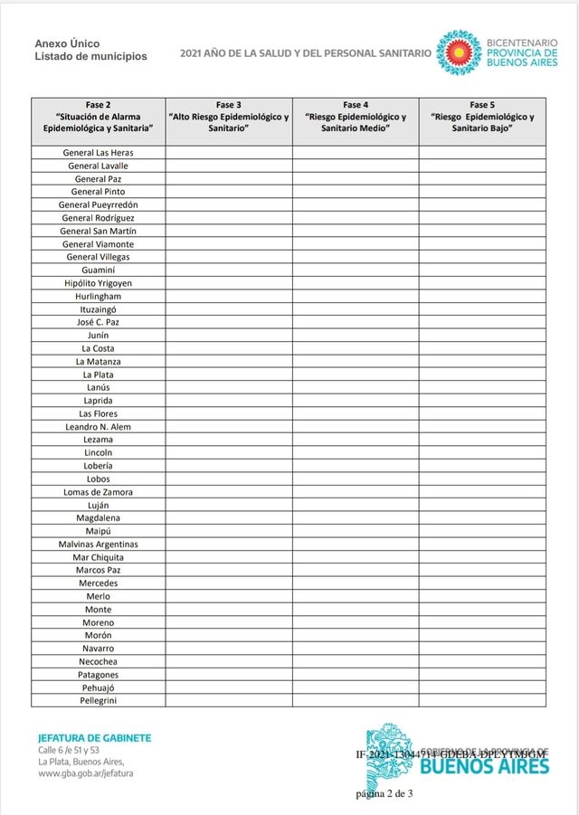 Se considera “en FASE 2 Situación de Alarma Epidemológica y Sanitaria”, a todos los municipios cuyos casos confirmados acumulados cada 100 mil habitantes sea igual o superior a 500, o el porcentaje de ocupación de camas de terapia intensiva hubiera superado el 80 por ciento.