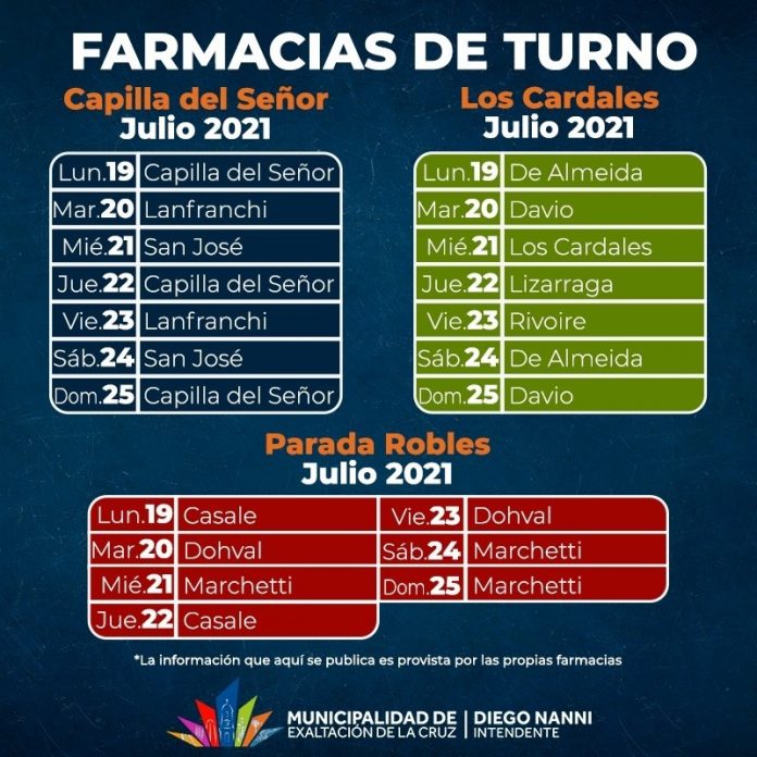 Columna de opinión Los turnos de las farmacias By Carlos Saavedra - 17/07/2021 0 764 Facebook Twitter Google+ Pinterest WhatsApp INFORMACION ÚTIL.