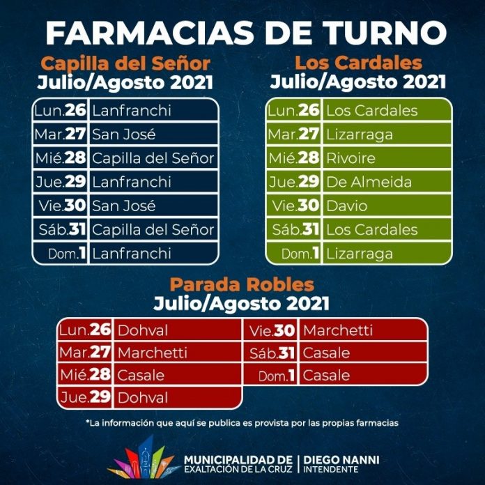 Interés general LOS TURNOS DE LAS FARMACIAS EN EL DISTRITO By epocadigital - 27/07/2021 0 751 Facebook Twitter Google+ Pinterest WhatsApp INFO ÚTIL.