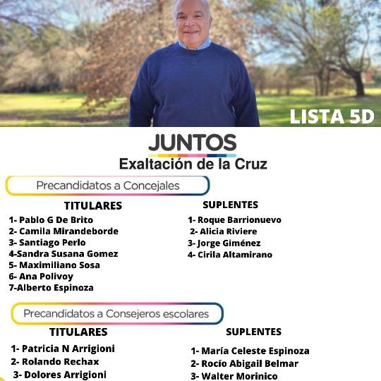 -Cualquier resultado que obtengamos en estas internas, para nosotros será un triunfo absoluto y además conseguir “mechar ” la lista que compita en noviembre en las elecciones generales, y ahí poder entonces alcanzar una banca en el Concejo Deliberante o un espacio en el Consejo Escolar, de acuerdo a la porcentualidad de votos obtenidos. Nuestro eje, consensuado con el grupo, se dirigirá hacia potenciar la educación en todos los niveles posibles. También en crear fuentes de trabajo, en la actividad privada con radicación de nuevas empresas, potenciar parques industriales, entre otros objetivos. Esto también redundará en el crecimiento del distrito. Para llevar adelante nuestra propuesta, utilizaremos todas las herramientas posibles que nos ofrezca el HCD y la legislación municipal y provincial, siempre dentro de acuerdos y consensos dejando de lado torpes diferencias planteadas por las banderas políticas. Para eso, me acompañan en el segundo y tercer lugar para concejales, Camila Mirandeborde y Santiago Perlo. Ambos son jóvenes abogados, con mucho futuro. Para el Consejo Escolar hemos postulado a la docente Patricia Arrigoni de vasta experiencia y con muchos años de trabajo en la escuela del Barrio Marin. A su vez, también se sumaron una mujer adulto mayor, Cirila Altamirano de 75 años y un veterano de la Guerra de Malvinas, Alberto Espinoza. Por otro lado, se suman más mas vecinos que decidieron acompañar la iniciativa de participar.