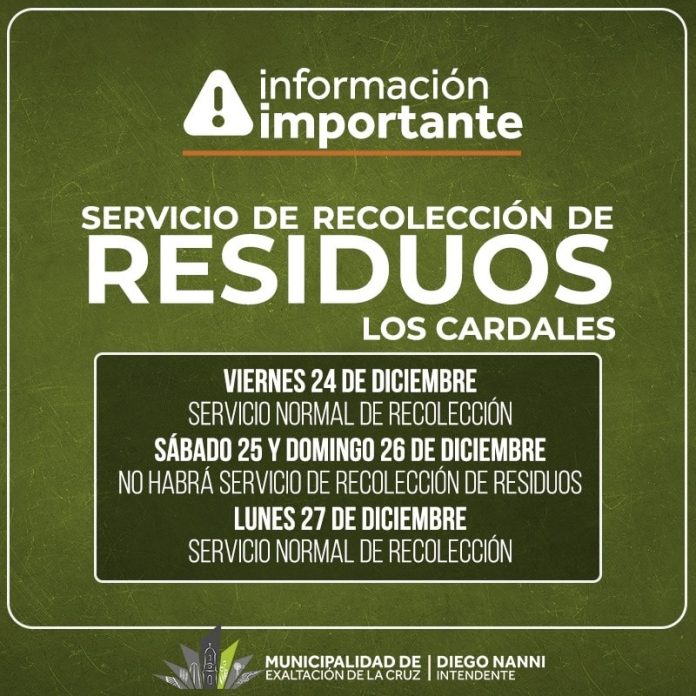 Aquí Los Cardales La recolección de residuos durante las fiestas By epocadigital - 23/12/2021 0 654 Facebook Twitter Google+ Pinterest WhatsApp INFO ÚTIL.