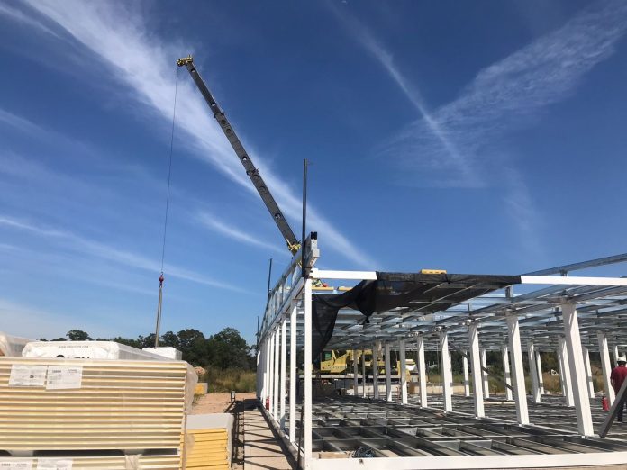 En el futuro Hospital de Los Cardales (¿que nombre llevará?, deberían elegirlo los vecinos), fueron instalados los módulos y luego la colocación del techo de toda la estructura.
