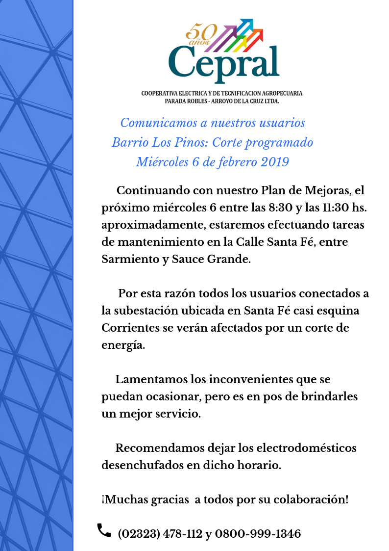Aquí Parada Robles Corte de luz programado de Cepral en el Barrio Los Pinos By epocadigital - 04/02/2019 0 1209 Facebook Twitter Google+ Pinterest WhatsApp NO TE OLVIDES.