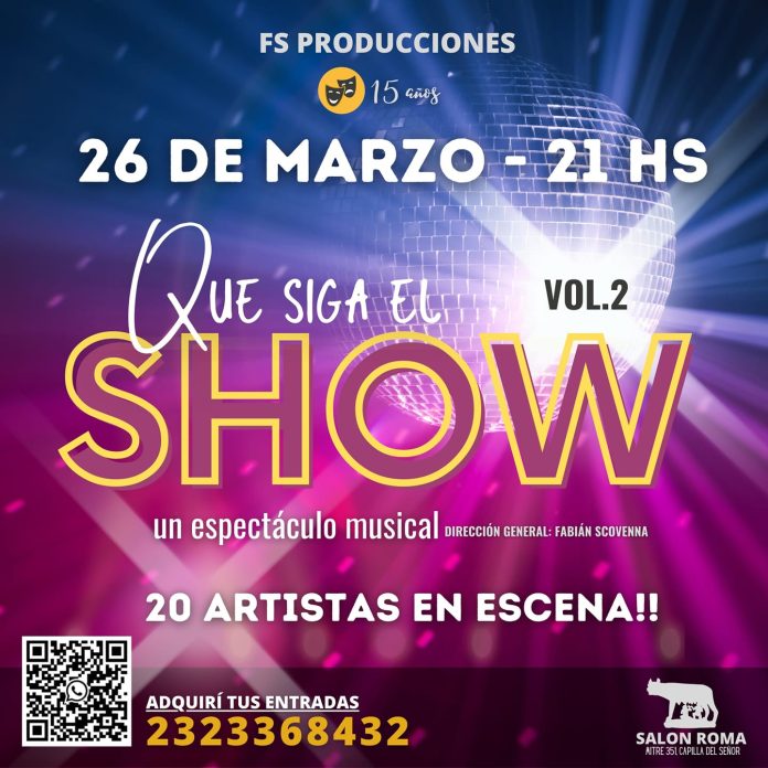 La productora de contenidos artísticos de Fabián Scovenna, pone en escena el espectáculo “Que siga el Show vol.1”. Se trata del segundo espectáculo musical que recorre canciones de todos los tiempos, recordando películas, musicales y grandes cantantes populares. Es un espectáculo apto para todo público.