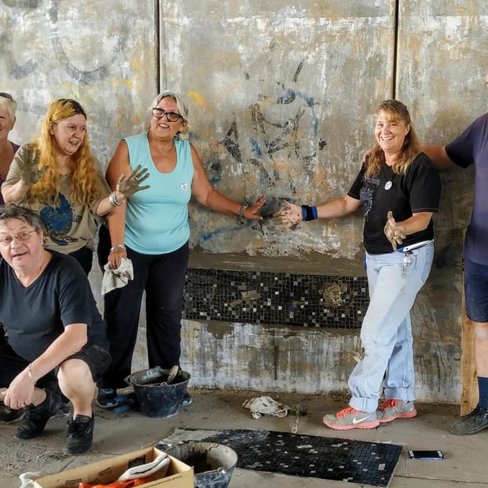El grupo de vecinos y familiares, junto con la artista Bettina Sabbatini, autora del mural, estuvieron llevando a cabo la difícil tarea de armar el mural en homenaje a los tripulantes del Ara San Juan. Muchas manos que se sumaron desinteresadamente para colaborar. La inauguración es el sábado 16 de febrero.