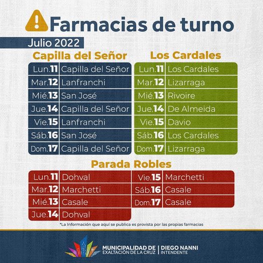 Aquí Parada RoblesBarrios Turnos de farmacias By epocadigital - 11/07/2022 0 700 Facebook Twitter Google+ Pinterest WhatsApp INFO ÚTIL.
