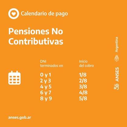 La Administración Nacional de Seguridad Social (Anses) ya confirmó el calendario con las fechas de pago para jubilados y pensionados nacionales para el mes de agosto de 2022, el cual comenzará el lunes 1 para pensiones no contributivas (PNC) y continuará con jubilaciones según la cifra a percibir y terminación de DNI.
