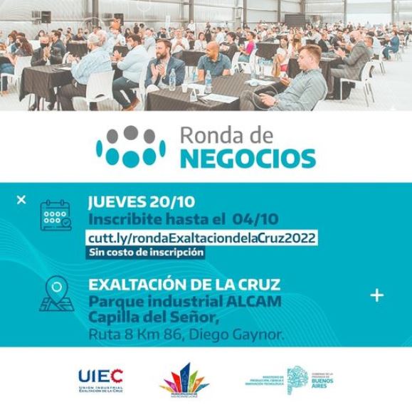 Lo organizan el Ministerio de Producción, Ciencia e Innovación Tecnológica de la provincia de Buenos Aires y la Municipalidad de Exaltación de la Cruz, e invitan a participar de la “Ronda de Negocios Multisectorial Exaltación de la Cruz 2022”.
