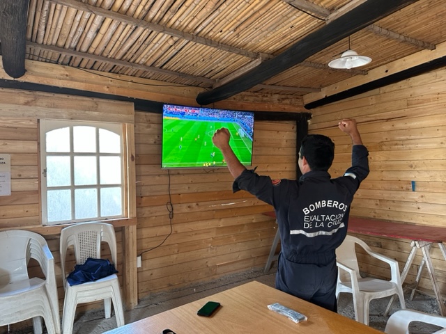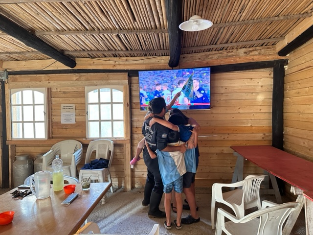 En el Cuartel como consignas sólo habían quedado el Ayudante Hugo Córdoba y el cuartelero. Hugo (40, juega “de 4” en el Club Social y Deportivo Capilla que participa en la liga de San Antonio de Areco), nervioso contó “en mi familia somos de River, me encanta Julián Alvarez y soy ombero desde hace 25 años”. Al rato llegaron su esposa Fernanda (40) y los hijos Gonzalo (12), Ignacio (8) y Guillermina (7) y, se unieron en un profundo abrazo cuando Argentina cantó victoria!. Vamos carajo!.