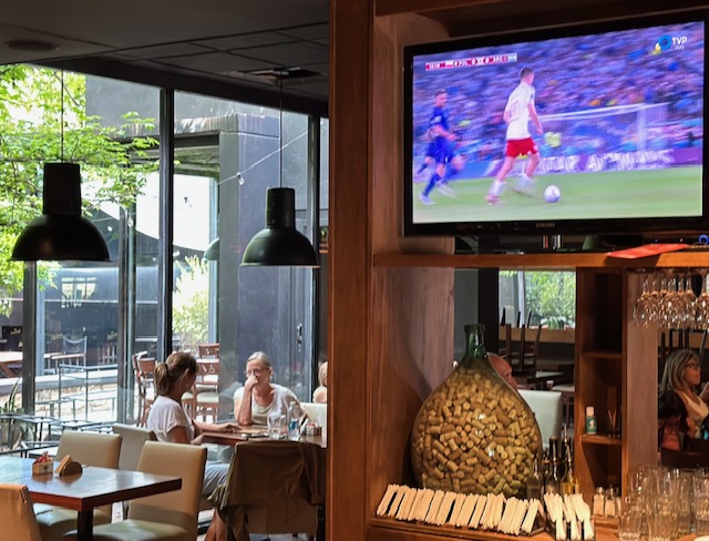 En Trevi, se percibía la tensión por las imágenes del partido que partían de los televisores, cada oportunidad perdida por los argentinos se lamentaba largamente, en tanto en una mesa curiosamente, conversaban animadamente dos amigas, Mónica Fuxan (esposa del propietario del conocido lugar, Enrique Benzaquen) y Patricia Boineau, intercambiando anécdotas del reciente y emotivo casamiento de Agustina, hija del matrimonio Benzaquen. “¿El partido?, lo vemos pero de a ratitos, estamos charlando del casamiento de mi hija y de cosas de amigas, ja!”, comentó sonriendo Mónica Fuxan mientras a escasos metros, Messi y cía luchaban para doblegar a Polonia…