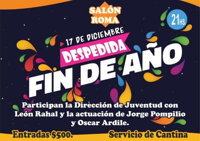 Lo que tenés que saber EN LA ASOCIACIÓN MUTUAL ROMA DE JUBILADOS, DESPEDIDA DE AÑO By epocadigital - 14/12/2022 0 685 Facebook Twitter Google+ Pinterest WhatsApp ESTE SÁBADO 17 DE DICIEMBRE.
