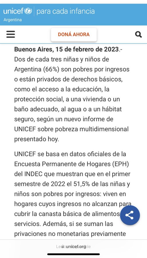 Interés general Dos de cada tres niñas y niños son pobres en Argentina By epocadigital - 19/02/2023 0 711 Facebook Twitter Google+ Pinterest WhatsApp PENSÁ EL MENSAJE DE UNICEF ARGENTINA Y DA UNA MANO.