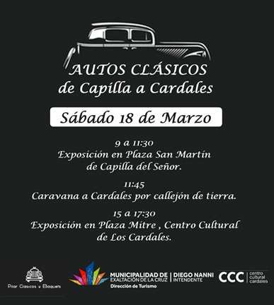 Tiene lugar la tan atractiva muestra “Autos Clásicos, de Capilla a Cardales”, evento anual organizado por la Agrupación Pilar Clásicos y Baquets, que cuenta con el apoyo de la Dirección de Turismo del municipio y el Centro Cultural Cardales.