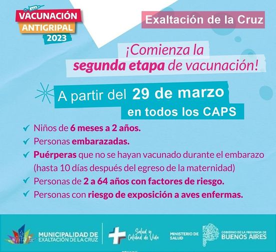 El ministerio de Salud de la Provincia lanza mañana la Campaña Nacional de Vacunación Antigripal 2023, destinada al personal de salud, niñas y niños de 6 a 24 meses, personas gestantes y puérperas, personas de 2 a 64 años con factores de riesgo, mayores de 65 años, y personal estratégico. Estará disponible en forma gratuita en todos los vacunatorios bonaerenses y no requiere orden médica.