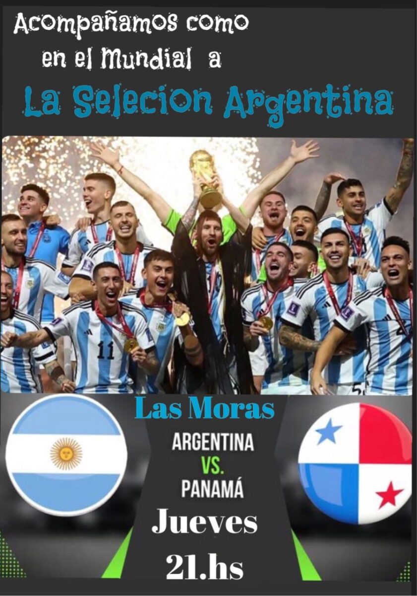 Se trata de la gran celebración ante un estadio repleto, por la inolvidable copa del mundo alcanzada en Qatar. Y así como se vivieron con mucha intensidad, nervios, emoción y lágrimas en el complejo Las Moras, los partidos de la “Scaloneta” en su camino hacia la gloria, que mejor que revivir esos momentos siguiendo el partido ante Jamaica en Las Moras junto a amigos, familiares y de paso, disfrutar de una muy buena cena.