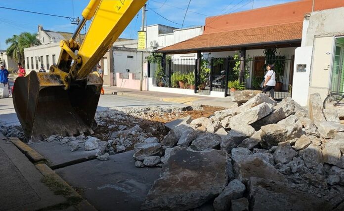 La reconstrucción de la calle Luis María Migliaro, en Capilla del Señor. Se trata de 250 metros lineales, desde la calle Pellegrini hasta la calle Irizar. Allí empezaron a remover el antiguo hormigón, luego se consolidará el suelo y finalmente, se colocará el nuevo hormigón.