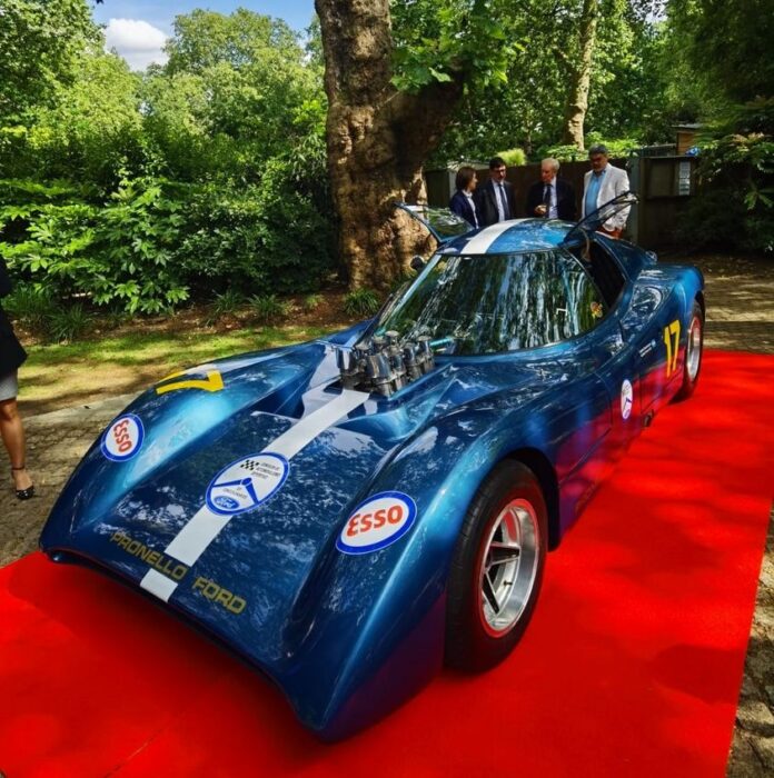 En la previa, el auto fue exhibido en la Embajada Argentina en Londres como “invitado de honor”, en un evento organizado por el embajador Javier Figueroa, donde también estuvieron el propietario de semejante joya, el coleccionista argentino Ricardo Zeziola, además el mencionado ingeniero Sergio Rinland (especialista en aerodinámica quien supo trabajar en equipos de Fórmula 1) y el diseñador Esteban Palazzo, oriundo de Tucumán quien se desempeña en la actualidad en la fábrica de la marca McLaren Automotive, ubicada como el equipo de F1, en la localidad de Woking. Además Palazzo acercó desde la fábrica de McLaren en Woking, un espectacular McLaren 720S Spider color celeste.