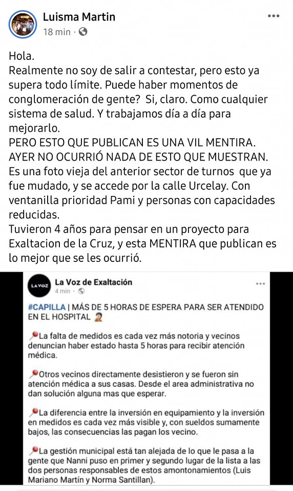 Los cruces entre sectores políticos en pugna, han comenzado a acentuarse. El caso de la polémica a través de redes sociales, el campo de moda para las disputas, entre Luis Mariano Martín, candidato a concejal en primer término por el oficialista frente Unión por la Patria y el medio digital La Voz de Exaltación, lo han reflejado.