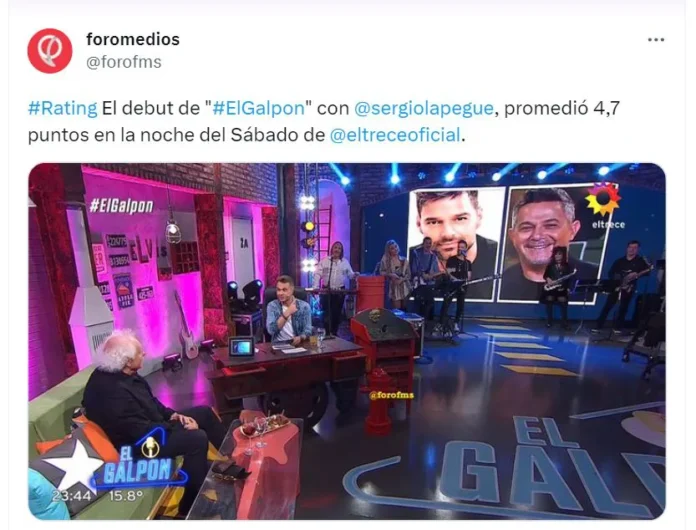 En su estreno, “El Galpón“, obtuvo un promedio de 4,7 puntos durante la noche del sábado en El Trece, quedando detrás de la emisión cinematográfica de Telefe, que superó los 6 puntos en audiencia. Insuficiente para el canal, especialmente considerando que anteriormente había alcanzado 7 puntos con sus películas clásicas de fin de semana.