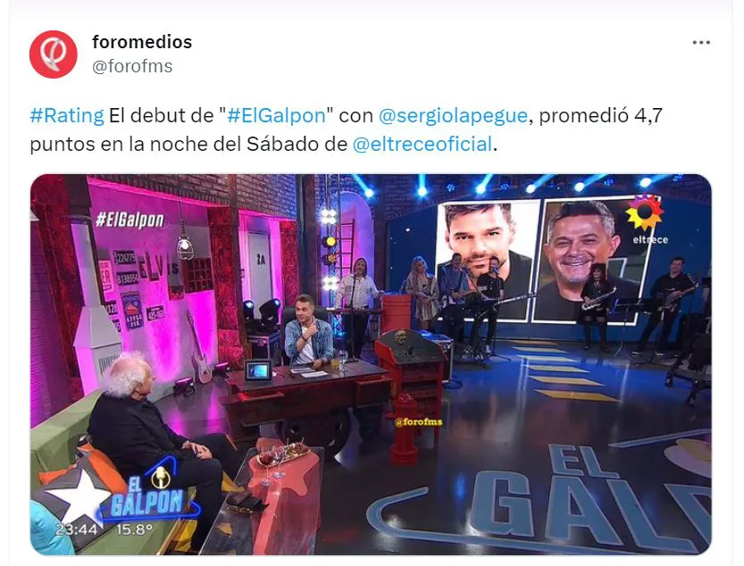 El nuevo programa de Sergio Lapegüe en El Trece. Su debut fue bien recibido por el público y obtuvo una calificación de audiencia bastante satisfactoria.