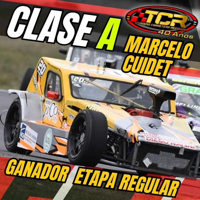 Marcelo Cuidet se quedó con la etapa regular previa al playoff que determinará el campeón 2023 de la Clase A. En el año que cumple 25 años en la Clase A, el representante capillense, ha venido manteniendo una extraordinaria regularidad que le permitió, con los dos podios conseguidos en Roque Pérez, quedarse con la etapa regular, y así arrancó el playoff con los 15 puntos otorgados al ganador del certamen.