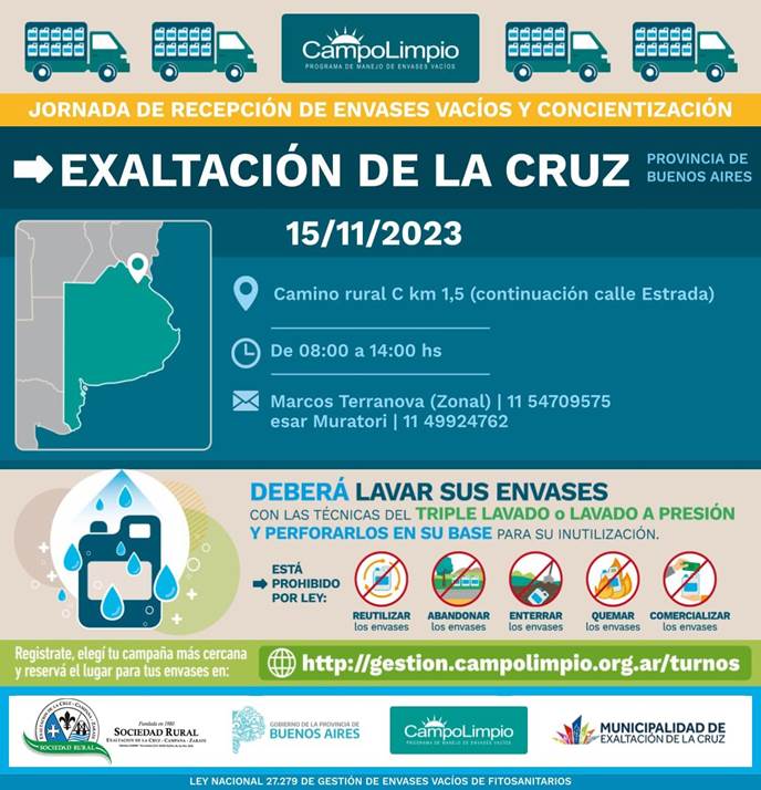 Entidades La Rural organiza. Hoy Jornada de recepción de envases vacíos y concientización By epocadigital - 14/11/2023 0 684 Facebook Twitter Google+ Pinterest WhatsApp A TOMAR EN CUENTA.