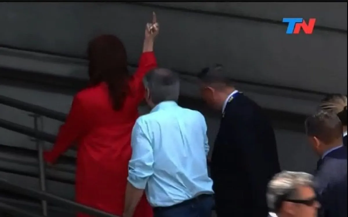 Al ingresar al Congreso acompañada por su hijo, Máximo Kirchner, tras escuchar algunos insultos provenientes de un grupo de personas que se encontraba en las afueras del palacio legislativo, Cristina Kirchner elevó el dedo medio de su mano derecha y respondió con un polémico fuck you.