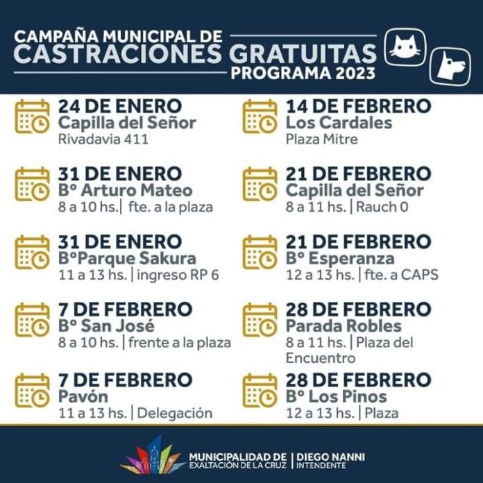 Para las fechas de castraciones se pueden sacar turno previo al 02323491369, de lunes a viernes, de 8 a 14 horas en la Dirección de Zoonosis, o acceder por orden de llegada en la fecha elegida.