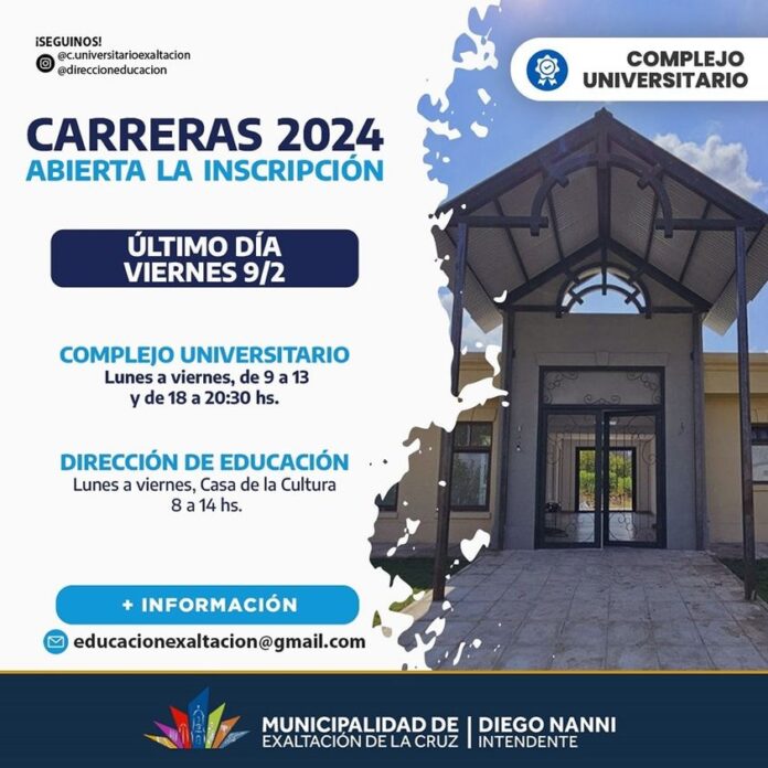 • Centro Universitario, de lunes a viernes, de 9 a 13 y de 18 a 20:30 horass. Calle San Martín 1025, Capilla del Señor.