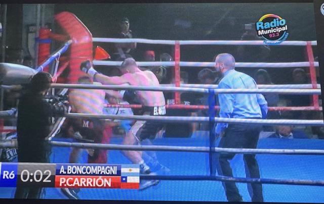 Se enfrentó al chileno Patricio Carrión. Estuvo en juego el título Feconsur Súper Ligero del Consejo Mundial de Boxeo.