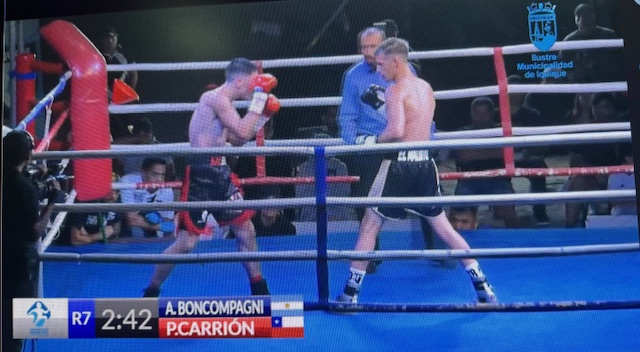 El boxeador iquiqueño, Patricio Carrion Flores con más de 7 años de experiencia en la disciplina, disputó y resolvió con victoria para alcanzar su primer título internacional y justo en pleno corazón de Playa Cavancha, ante su rival el argentino, Alan Nahuel Boncompagni, proveniente de la ciudad de Capilla del Señor, provincia de Buenos Aires.
