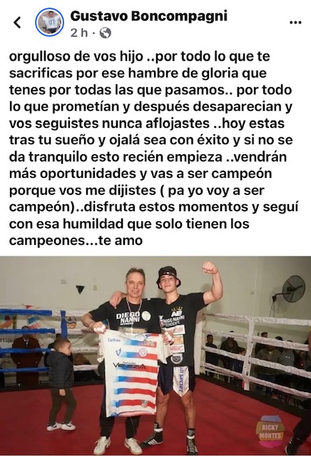 Su padre Gustavo, incondicional, un gran respaldo para el púgil capillense reflejó sus emociones en un mensaje en la red social Facebook.