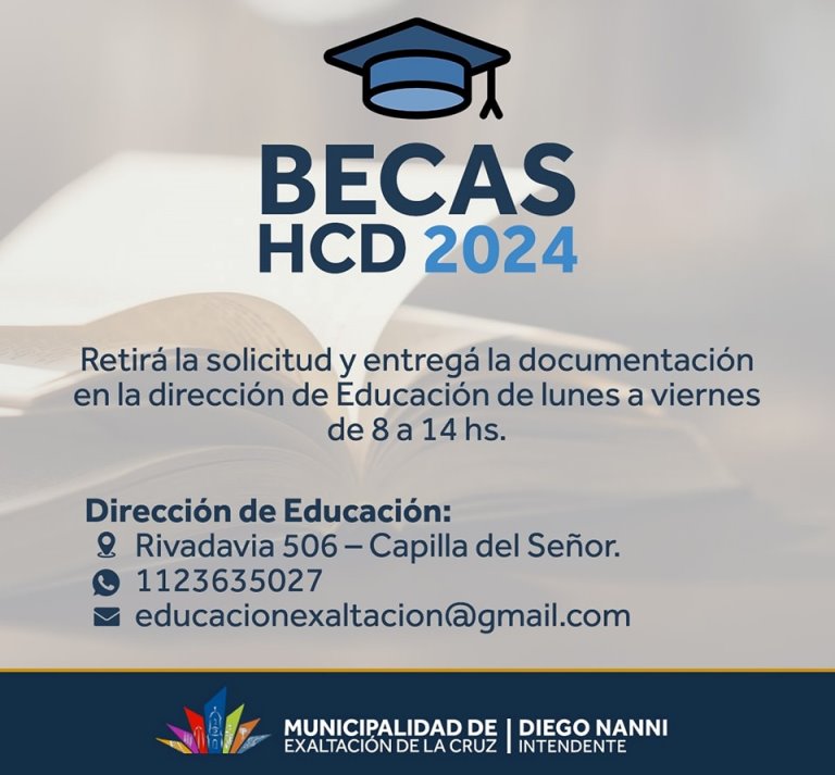 Ya podés retirar la solicitud a la beca y entregar la documentación requerida en la dirección de Educación, Rivadavia 506, Capilla del Señor. De lunes a viernes, de 8 a 14 hs.