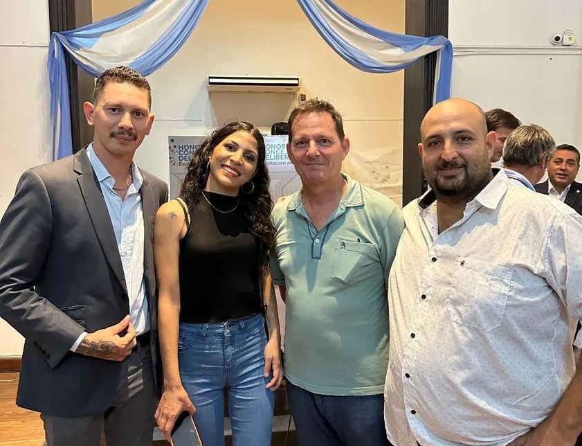 Todos en el Concejo. La concejal Denisa Verón, el concejal Esteban Lizaso ambos del bloque de La Libertad Avanza, junto a integrantes del nuevo nucleamiento político que ha ingresado al HCD y es para tenerlo en cuenta.