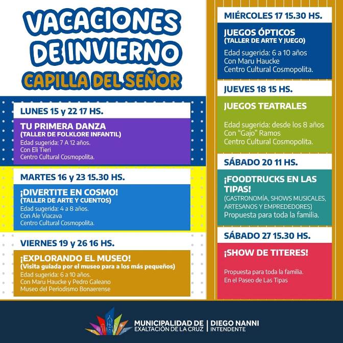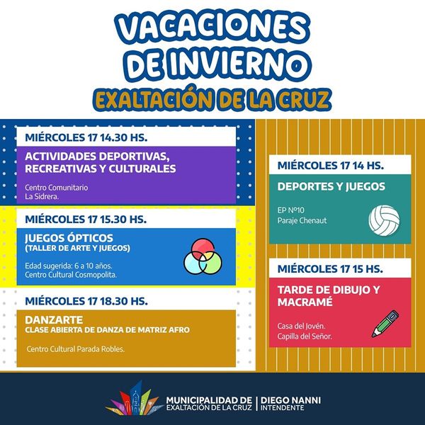 Actividades deportivas y recreativas en diversas localidades del distrito como Carlos Lemeé, Barrio Marín y en el Centro Cultural Cosmopolita. También en la Casa del Joven con cine y en la Cosmopolita en el Taller de arte y cuentos..