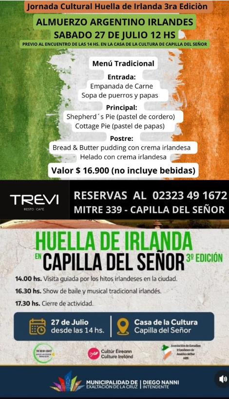 La pintoresca y destacada jornada cultural que comprende la tercera edición de la Huella de Irlanda en Capilla del Señor, donde supieron residir vecinos de origen irlandés muchos años atrás, se realiza este sábado 27.