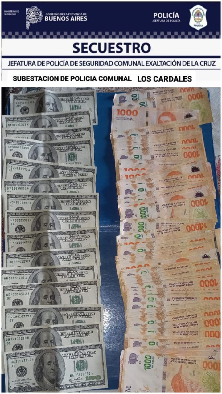Al mismo tiempo, durante la requisa de la finca, los uniformados incautaron dinero en efectivo y dólares estadounidenses. El segundo allanamiento se produjo en una casa situada en la calle 9 de Julio entre Los Tilos y Ugarte, arrojando resultados negativos