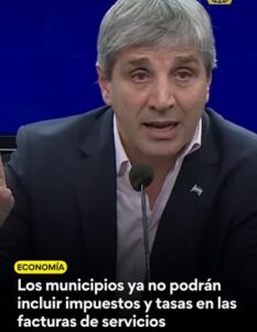 Luis Caputo sostuvo que las municipalidades del país, ya no podrán continuar incluyendo impuestos y tasas en las facturas de servicios. La puesta en práctica de esta modalidad se fue extendiendo en los últimos años, como un recurso adoptados por municipios para incrementar sus recursos.