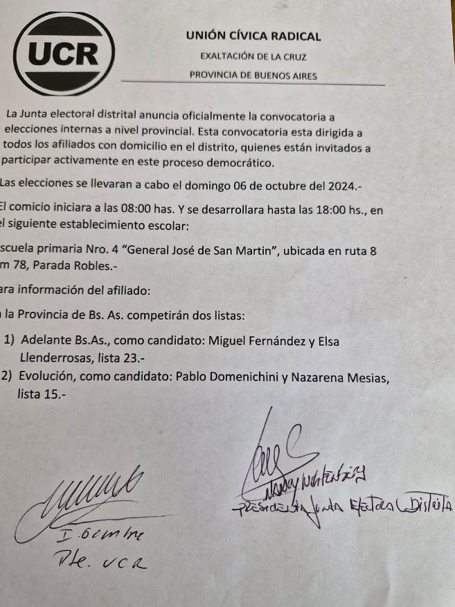 EN EL DISTRITO PARA CONDUCIR A LA UCR Y POR ENDE AL COMITÈ RADICAL, SE PRESENTA UNA ÚNICA LISTA, PESE A LAS ESPECULACIONES QUE INDICABAN QUE COMPETIRÍA OTRO SECTOR INTERNO OPOSITOR AL ACTUAL OFICIALISMO.