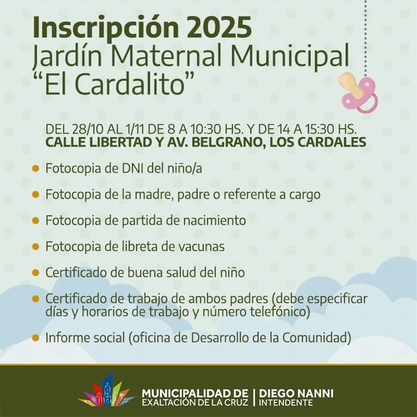 Comenzará la inscripción a los Jardines Maternales Municipales de Capilla del Señor y Los Cardales, y el nuevo CDI de Parada Robles