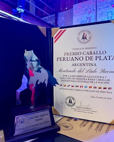 Enorme y justicada emoción en Perú en el equipo argentino “Montando del Lado Bueno”, que en el Mundial del Caballo Peruano de Paso 2024, se adjudicó el muy reconocido premio “Caballo Peruano de Plata” en Lima.