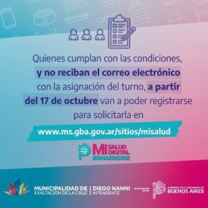 Quienes cumplan las condiciones pero no reciban el email, pueden registrarse en www.ms.gba.gov.ar/sitios/misalud