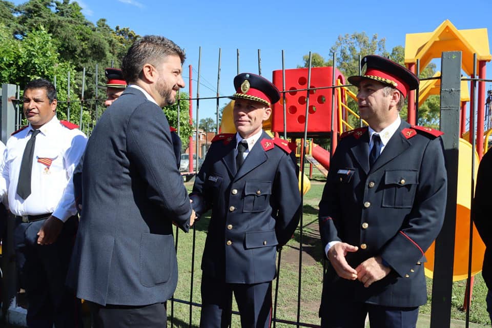 El intendente Nanni, saluda autoridades de los Bombeross Voluntarios de la localidad.