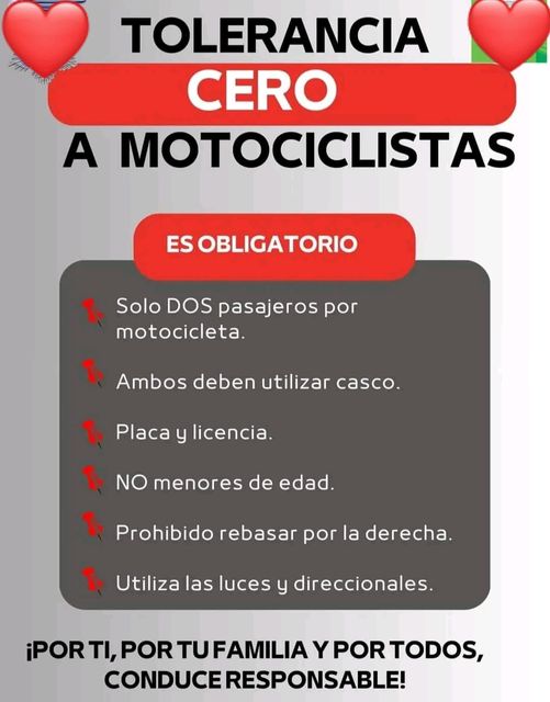 Los motoclistcas así como los ciclistas, suelen transitar sin cumplir con las normas estipuladas y, tampco respetando las de tránsitos, incluso provocando contiuos ruidos molestos que perjudican a vecinos y controlados sin la rigurosidad y permanencia constante durante las 24 horas del día.