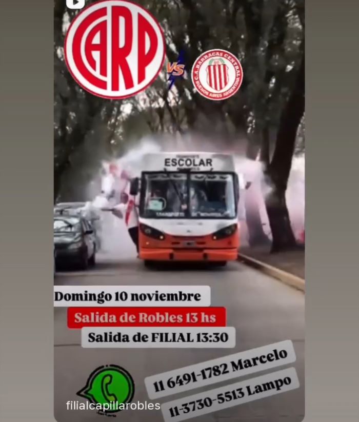 Y como es habitual, la Filial River Capilla Robles, invita a los hinchas de los millonarios a alentar a los de Gallardo para que den un espectáculo en el Monumetal de Nuñez.