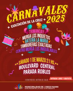 Entrada libre y gratuita. Carnavales 2025 a beneficio del Sistema de Salud de Exaltación de la Cruz.