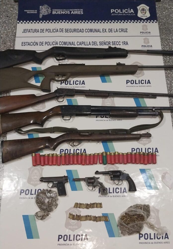El personal policial de Exaltación de la Cruz, llevó adelante un operativo que culminó con el secuestro de armas de fuego y una importante cantidad de municiones. El procedimiento se realizó en el marco de una investigación en curso, y como resultado se incautaron: